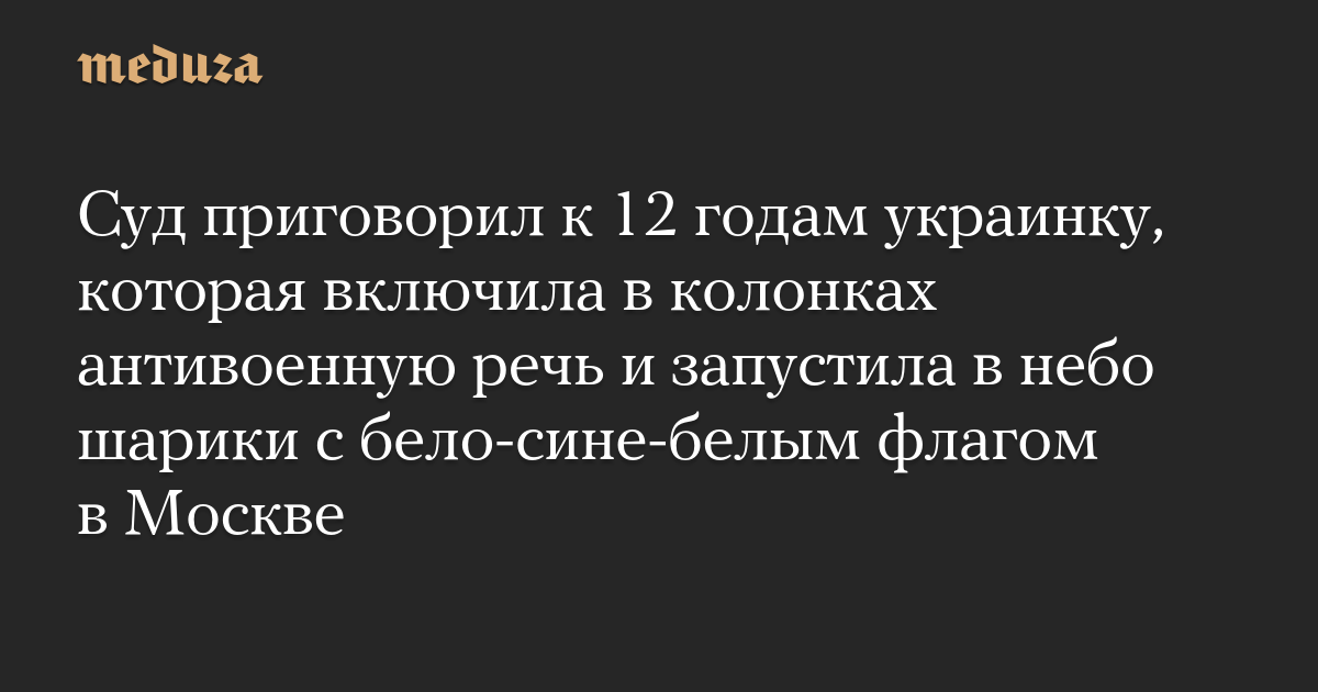 Суд приговорил к 12 годам украинку, которая включила в колонках антивоенную речь и запустила в небо шарики с бело-сине-белым флагом в Москве