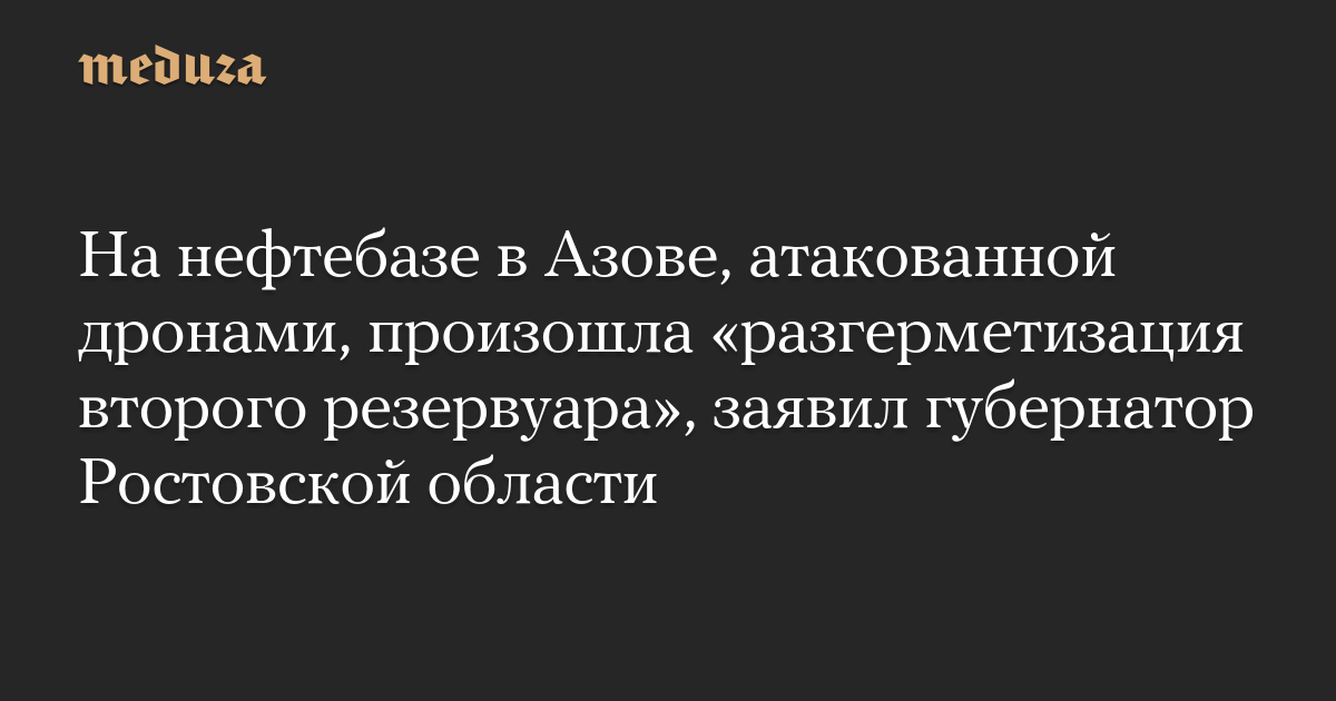На нефтебазе в Азове, атакованной дронами, произошла «разгерметизация второго резервуара», заявил губернатор Ростовской области