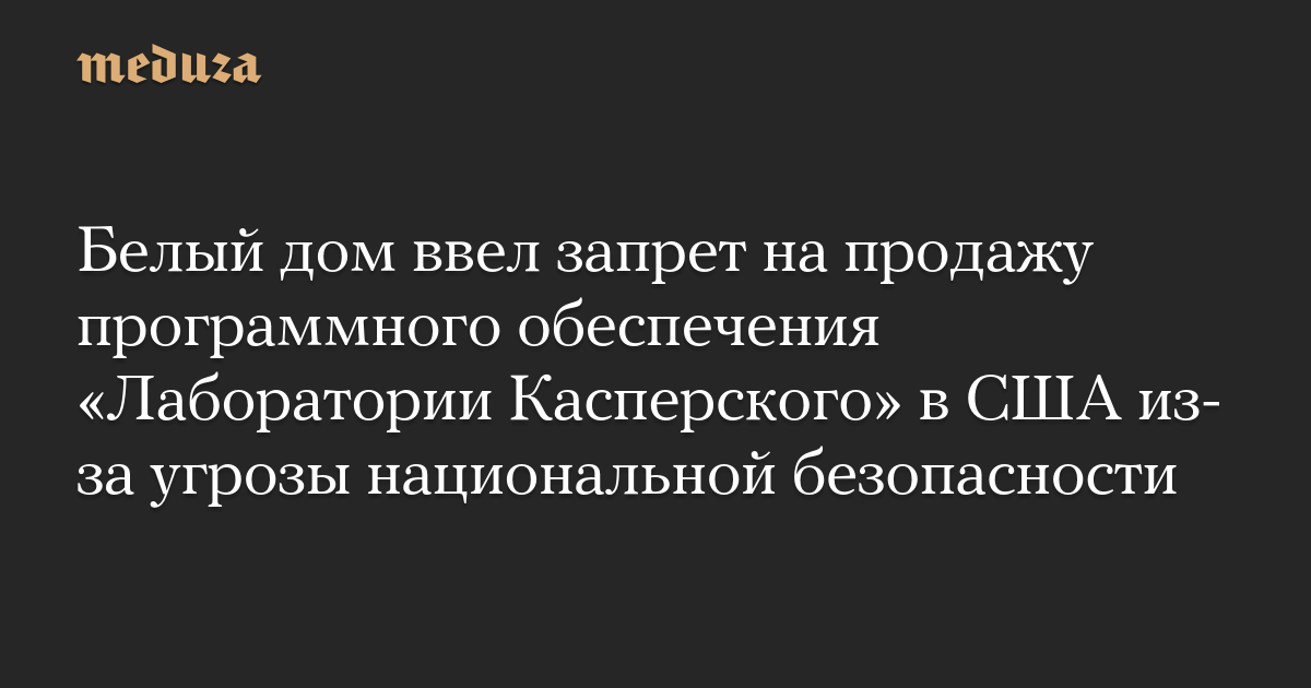Белый дом ввел запрет на продажу программного обеспечения «Лаборатории Касперского» в США из-за угрозы национальной безопасности
