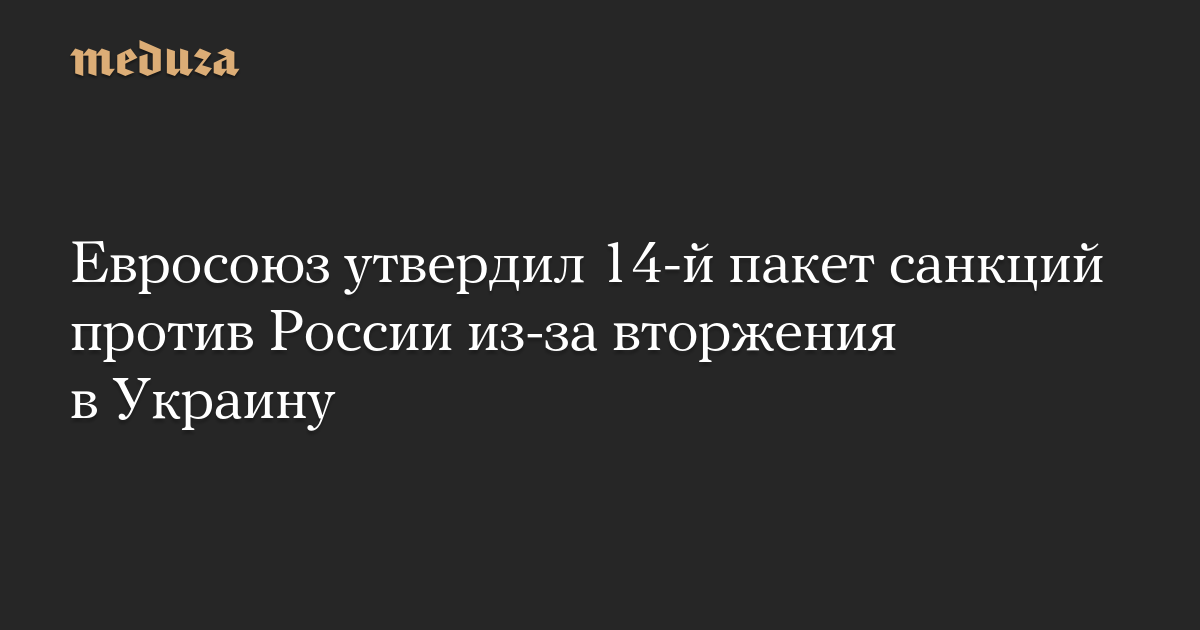 Евросоюз утвердил 14-й пакет санкций против России из-за вторжения в Украину