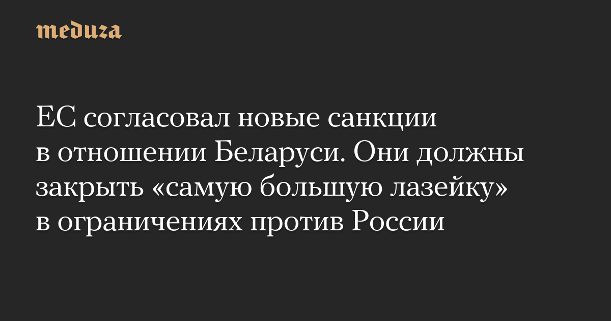 ЕС согласовал новые санкции в отношении Беларуси. Они должны закрыть «самую большую лазейку» в ограничениях против России