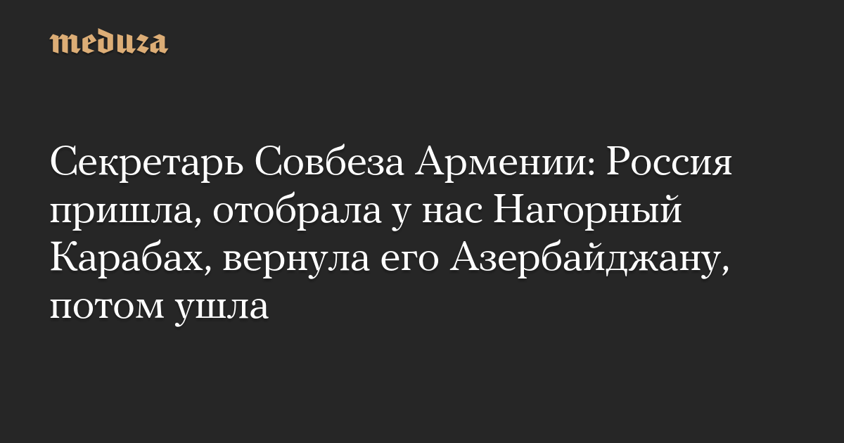 Секретарь Совбеза Армении: Россия пришла, отобрала у нас Нагорный Карабах, вернула его Азербайджану, потом ушла