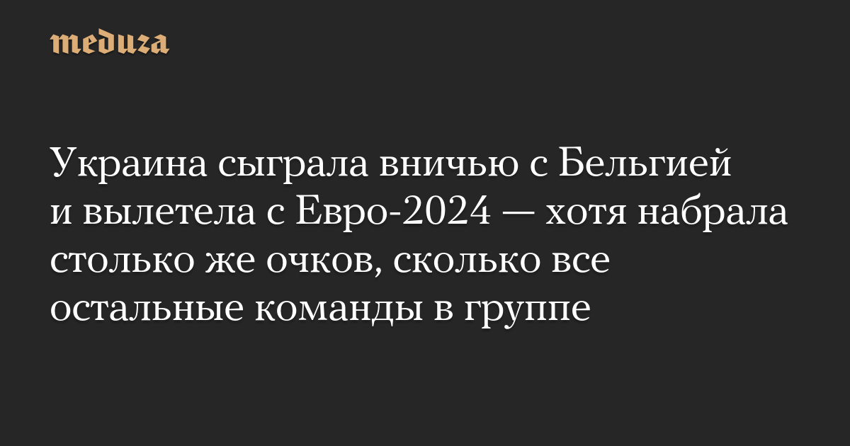 Украина сыграла вничью с Бельгией и вылетела с Евро-2024 — хотя набрала столько же очков, сколько все остальные команды в группе