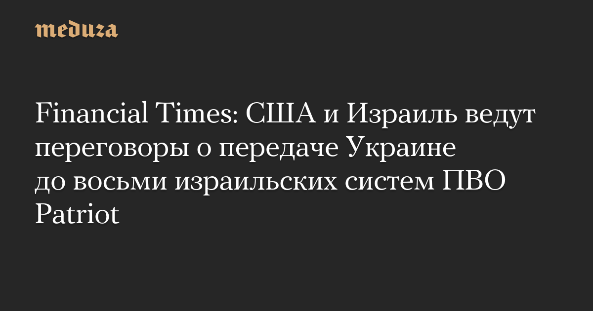 США, Израиль и Украина ведут переговоры о передаче Киеву нескольких систем ПВО Patriot, сообщает газета Financial Times со ссылкой на пять источников, знакомых с ходом переговоров.