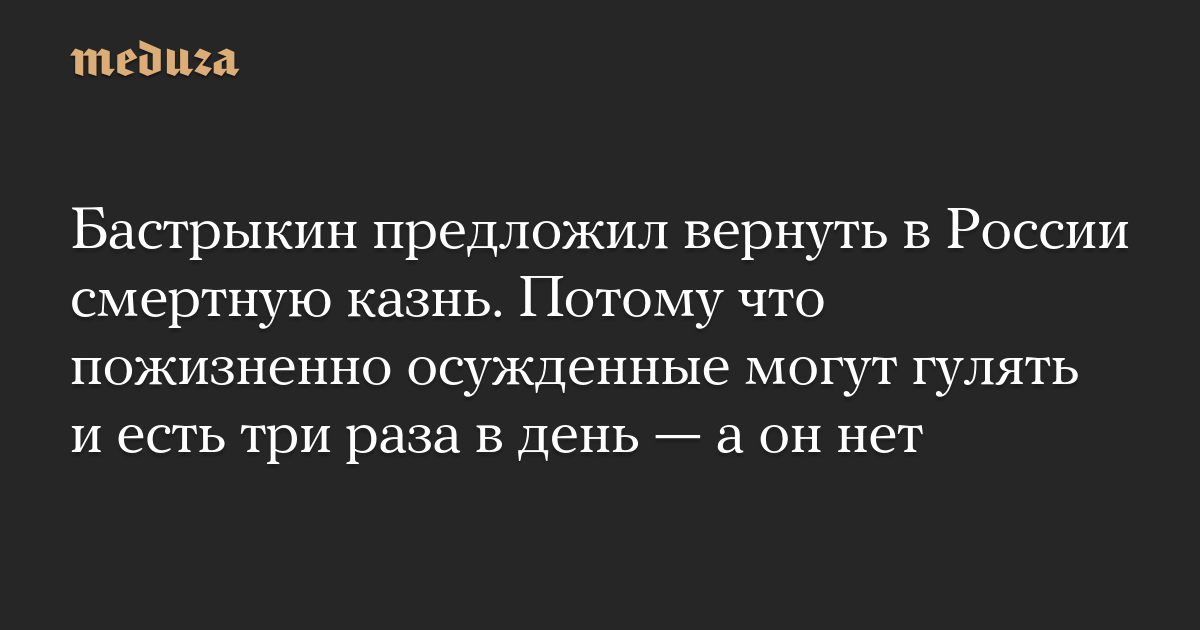 Бастрыкин предложил вернуть в России смертную казнь. Потому что пожизненно осужденные могут гулять и есть три раза в день — а он нет