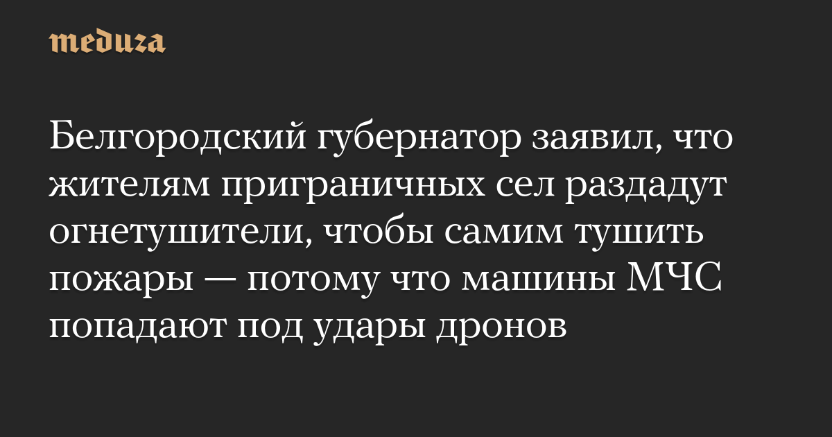 Белгородский губернатор заявил, что жителям приграничных сел раздадут огнетушители, чтобы самим тушить пожары — потому что машины МЧС попадают под удары дронов