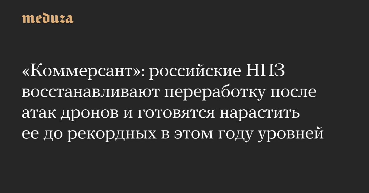 «Коммерсант»: российские НПЗ восстанавливают переработку после атак дронов и готовятся нарастить ее до рекордных в этом году уровней