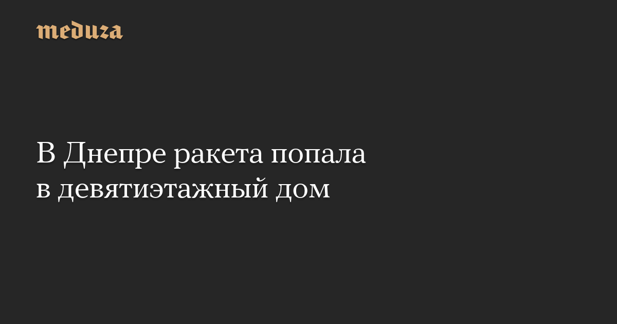 Обновление. В результате ракетного удара по жилому дому в Днепре, по данным на 19:45, погиб один человек, сообщил глава МВД Украины Игорь Клименко. Пострадали 12 человек, в том числе семимесячный младенец и беременная женщина, заявил глава Днепропетровской области Сергей Лысак. По данным властей, в квартирах могут быть заблокированы люди.