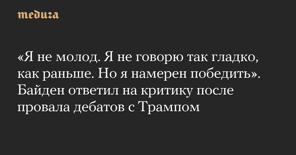 «Я не молод. Я не говорю так гладко, как раньше. Но я намерен победить». Байден ответил на критику после провала дебатов с Трампом