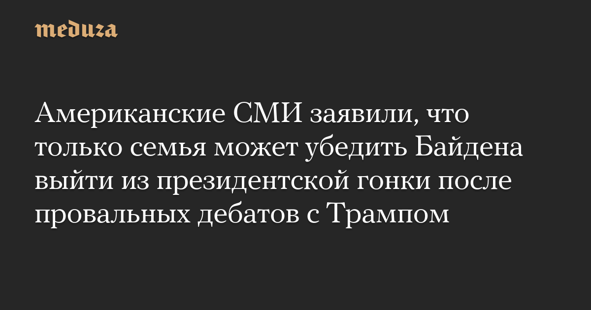 Американские СМИ заявили, что только семья может убедить Байдена выйти из президентской гонки после провальных дебатов с Трампом