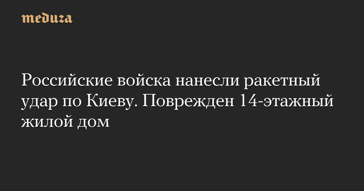 Российские войска нанесли ракетный удар по Киеву. Поврежден 14-этажный жилой дом