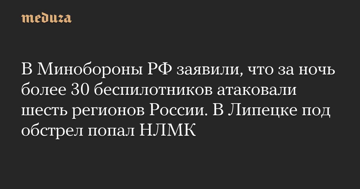 В Минобороны РФ заявили, что за ночь более 30 беспилотников атаковали шесть регионов России. В Липецке под обстрел попал НЛМК