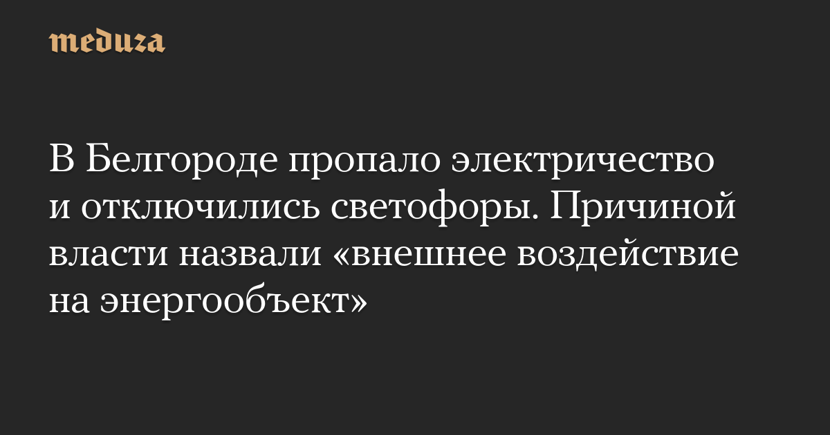 В «Белгородэнерго» заявили, что электричество отключилось из-за технологического нарушения, вызванного «внешним воздействием на энергообъект». Какой энергообъект пострадал — не уточняется. По предварительным данным, как пишет телеграм-канал «Пепел», причиной отключения электричества стала атака на подстанцию.