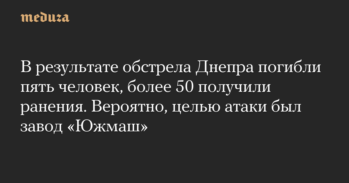 В результате обстрела Днепра погибли пять человек, более 50 получили ранения. Вероятно, целью атаки был завод «Южмаш»