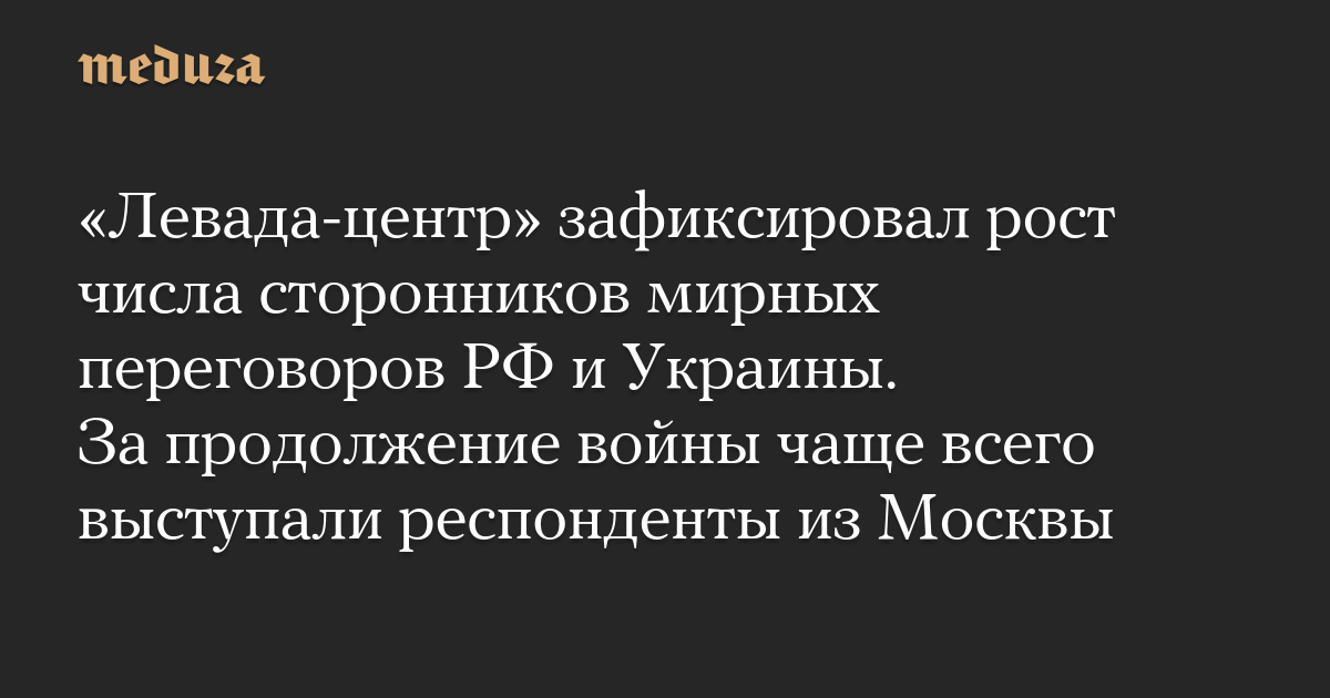«Левада-центр» зафиксировал рост числа сторонников мирных переговоров РФ и Украины. За продолжение войны чаще всего выступали респонденты из Москвы