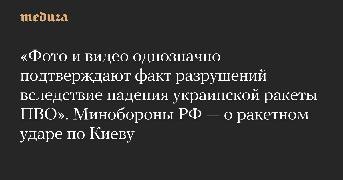 «Фото и видео однозначно подтверждают факт разрушений вследствие падения украинской ракеты ПВО». Минобороны РФ — о ракетном ударе по Киеву