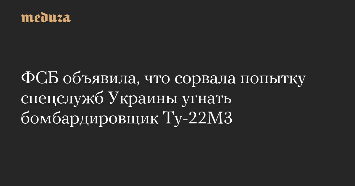 ФСБ России заявила, что предотвратила попытку украинских спецслужб завербовать российского летчика с целью угона сверхзвукового стратегического бомбардировщика Ту-22М3. Об этом 8 июля сообщает «Интерфакс» со ссылкой на российскую спецслужбу