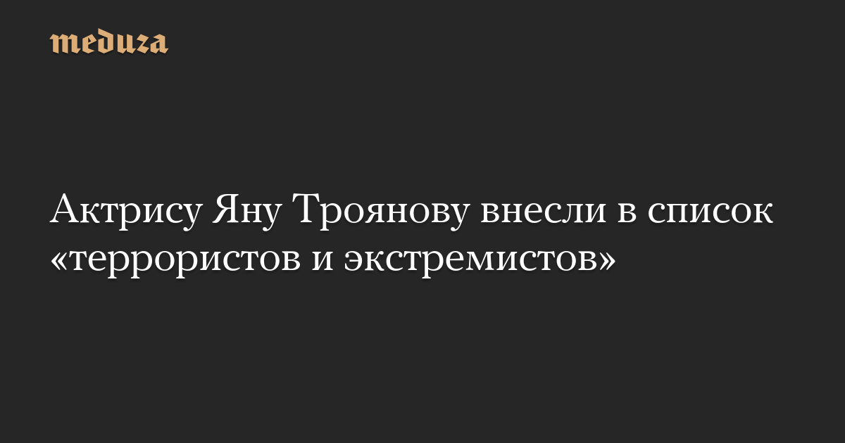 Росфинмониторинг внес в список «террористов и экстремистов» актрису Яну Троянову. На изменения в перечне обратило внимание агентство РИА Новости.