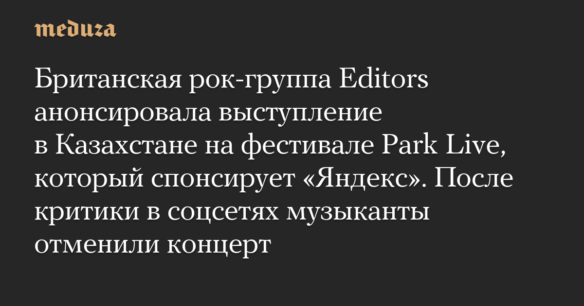 Британская рок-группа Editors анонсировала выступление в Казахстане на фестивале Park Live, который спонсирует «Яндекс». После критики в соцсетях музыканты отменили концерт