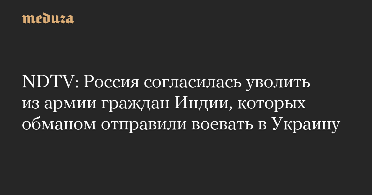 NDTV пишет, что в войне в Украине участвовали или участвуют около двух десятков граждан Индии, которым изначально обещали высокооплачиваемую работу. На войне погибли как минимум двое индийцев, уточняет телеканал.