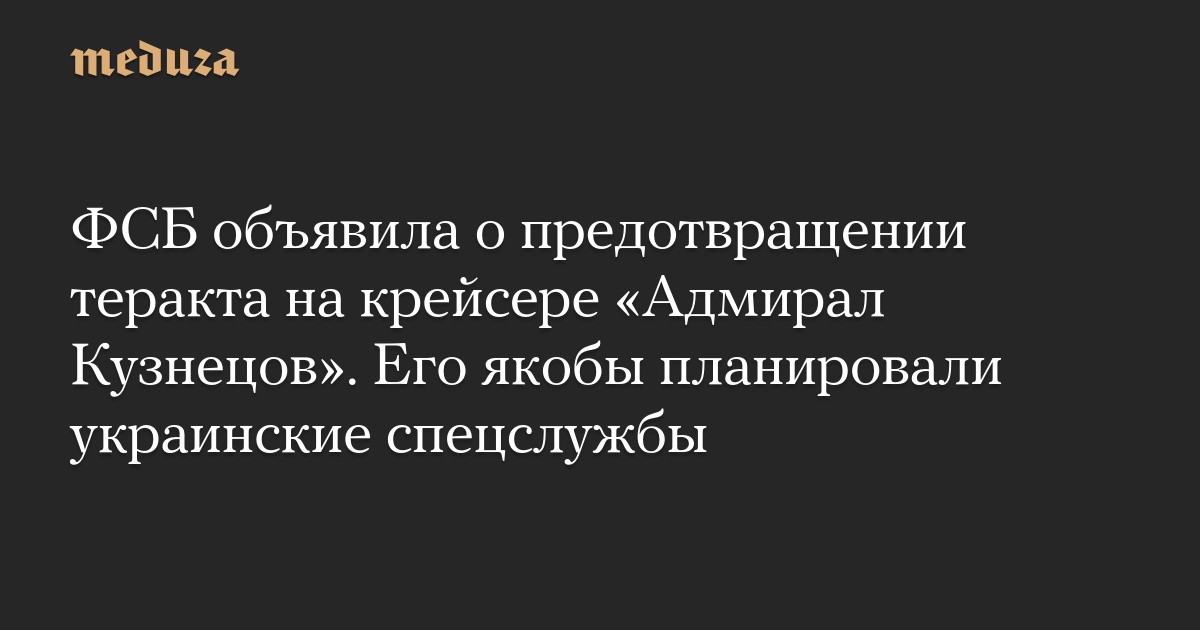 ФСБ объявила, что предотвратила теракт на авианосце «Адмирал Кузнецов», а также покушения на трех высокопоставленных сотрудников Минобороны. Как утверждает ведомство, преступления якобы планировали украинские спецслужбы.