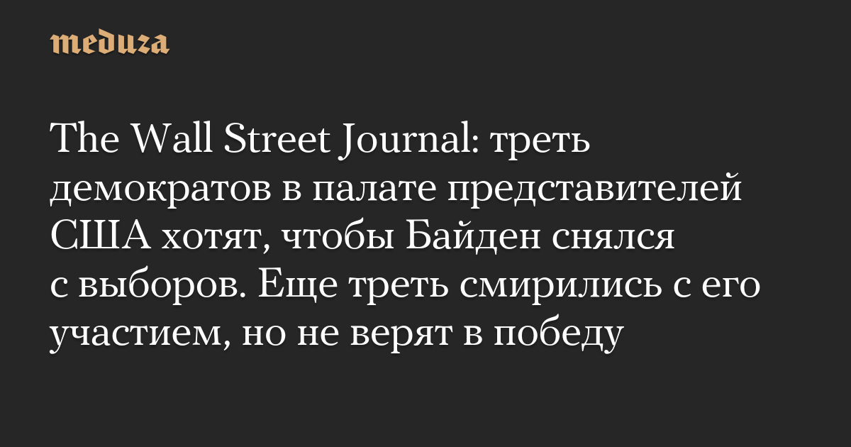 The Wall Street Journal: треть демократов в палате представителей США хотят, чтобы Байден снялся с выборов. Еще треть смирились с его участием, но не верят в победу