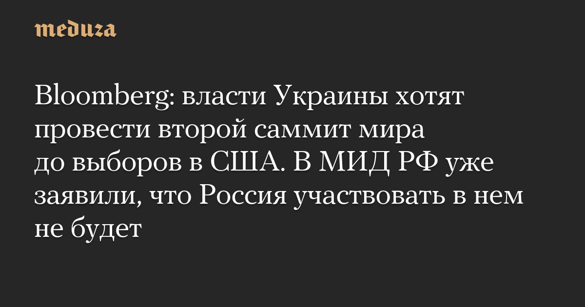 Bloomberg: власти Украины хотят провести второй саммит мира до выборов в США. В МИД РФ уже заявили, что Россия участвовать в нем не будет