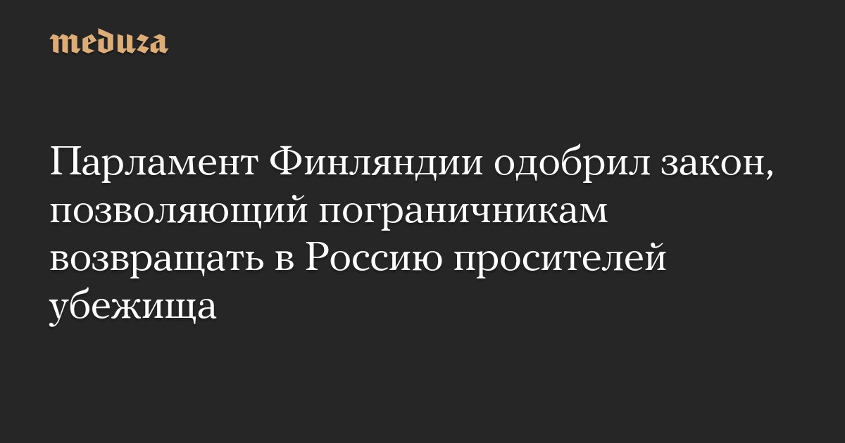 Парламент Финляндии одобрил закон, позволяющий пограничникам возвращать в Россию просителей убежища