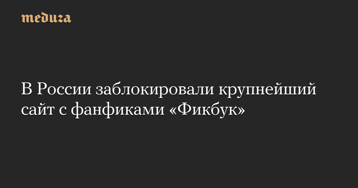 Роскомнадзор ограничил доступ на территории России к крупнейшему русскоязычному сайту с фанфиками «Фикбук» («Книга фанфиков»). Сайт проекта появился в реестре блокировок РКН.