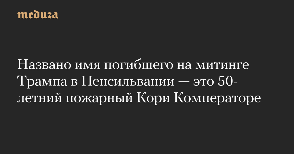 Погибшего на предвыборном митинге в городе Батлер в штате Пенсильвания, где 13 июля произошло покушение на бывшего президента США Дональда Трампа, зовут Кори Комператоре. Об этом рассказала его сестра Дон Комператор Шафер.