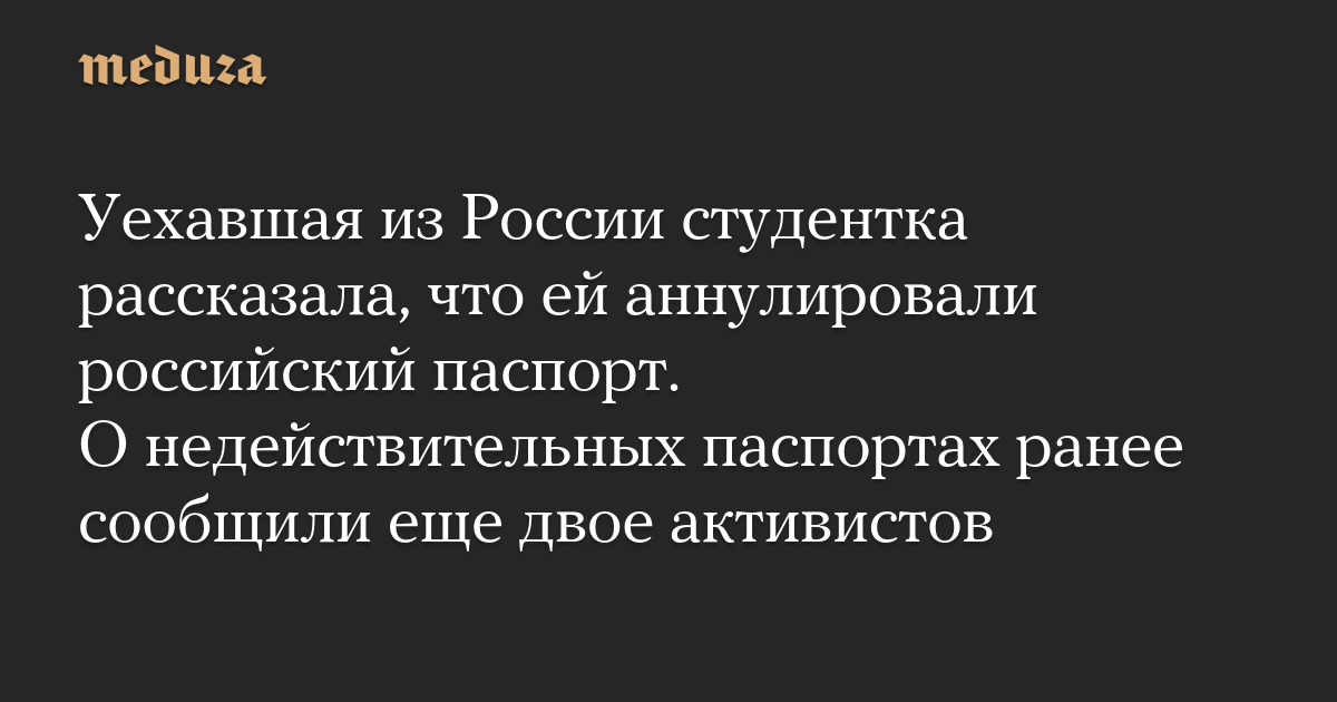 Уехавшая из России студентка рассказала, что ей аннулировали российский паспорт. О недействительных паспортах ранее сообщили еще двое активистов