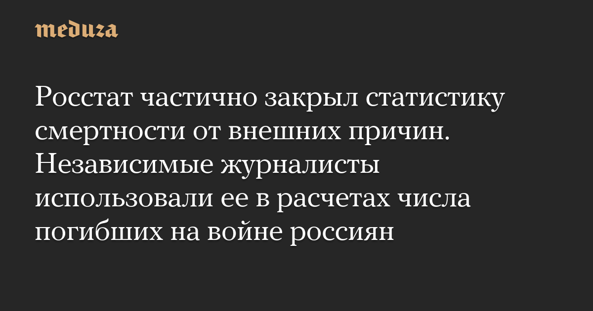 Росстат частично закрыл статистику смертности от внешних причин. Независимые журналисты использовали ее в расчетах числа погибших на войне россиян