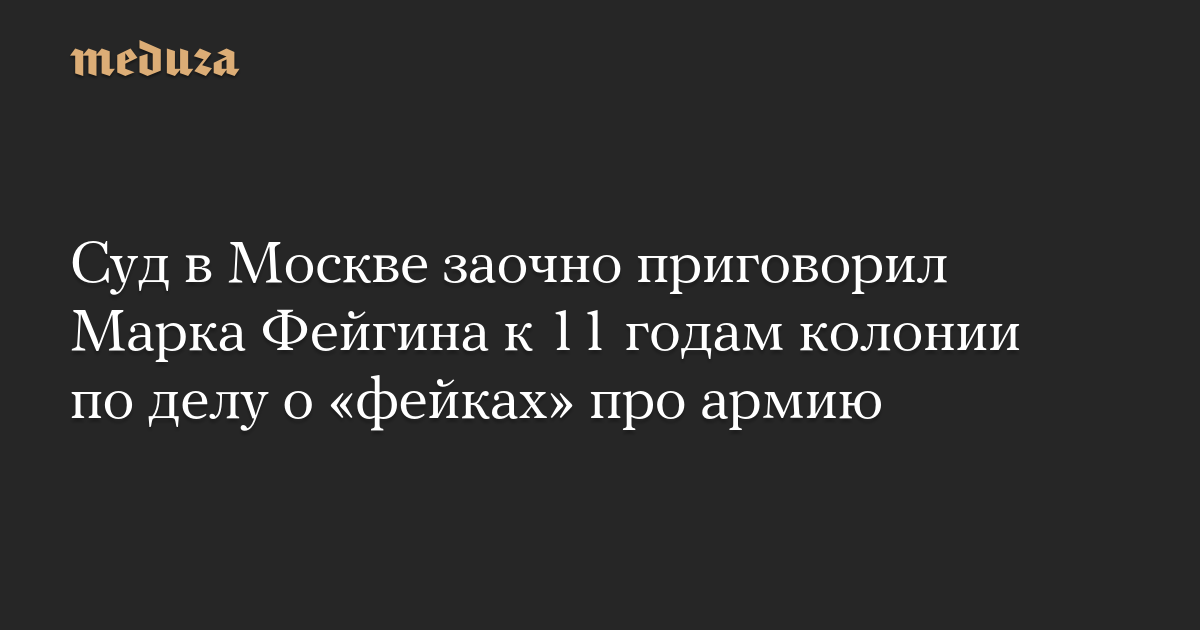Басманный суд Москвы заочно приговорил юриста и блогера Марка Фейгина к 11 годам колонии общего режима по делу о распространении «фейков» о российской армии по мотивам политической ненависти (пункт «д» части 2 статьи 207.3 УК), сообщила Генпрокуратура России.