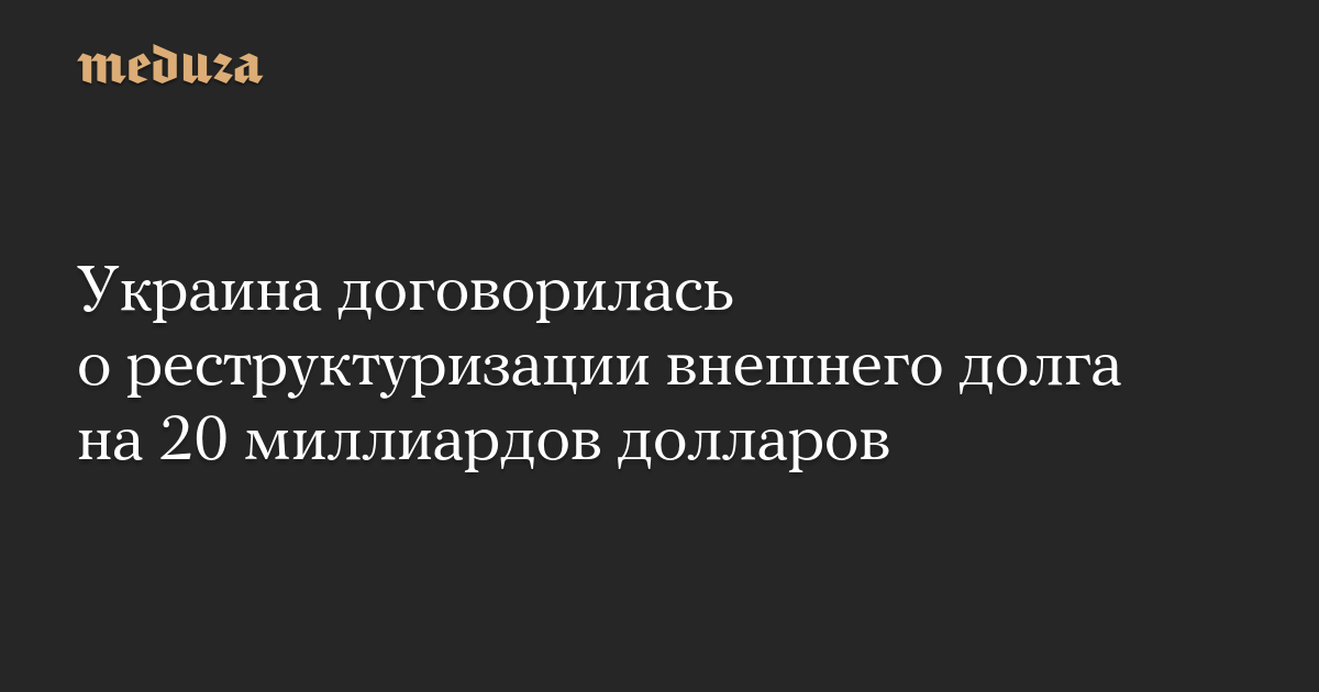 Украина договорилась о реструктуризации внешнего долга на 20 миллиардов долларов