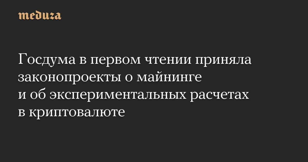 Госдума в первом чтении приняла законопроекты о майнинге и об экспериментальных расчетах в криптовалюте