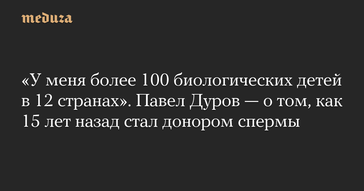 «У меня более 100 биологических детей в 12 странах». Павел Дуров — о том, как 15 лет назад стал донором спермы