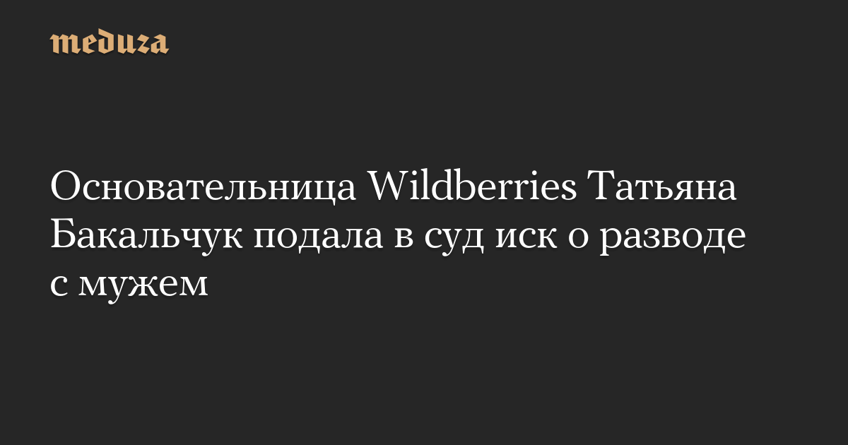 Основательница и генеральный директор Wildberries Татьяна Бакальчук подала иск в суд к своему мужу Владиславу Бакальчуку, сообщает пресс-служба московских судов.