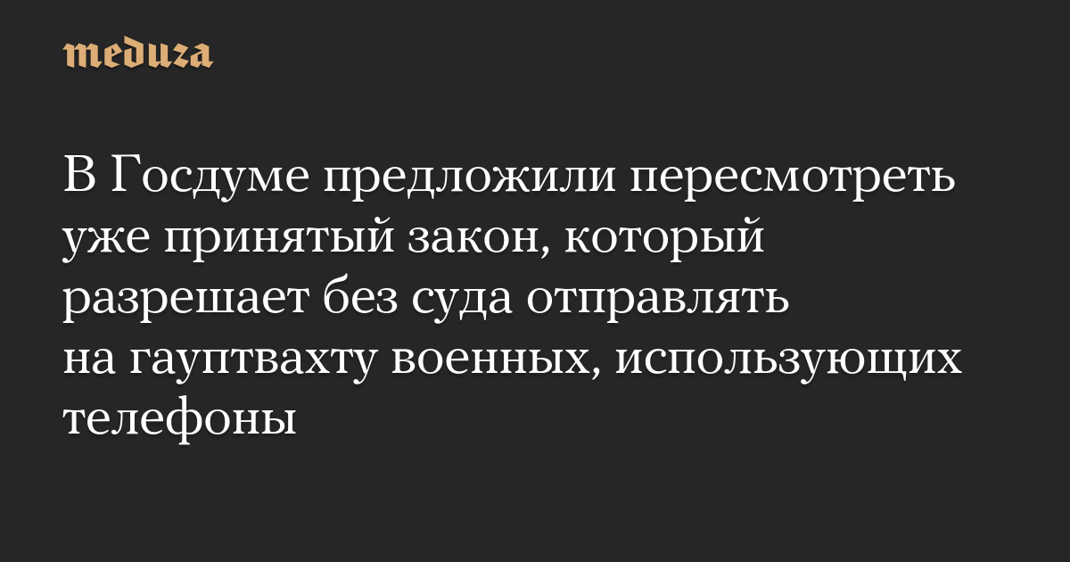 В Госдуме предложили пересмотреть уже принятый закон, который разрешает без суда отправлять на гауптвахту военных, использующих телефоны