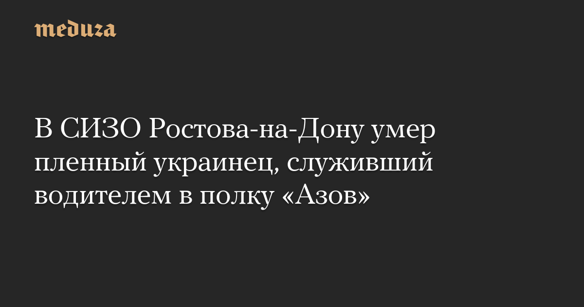 В СИЗО Ростова-на-Дону умер пленный украинец, служивший водителем в полку «Азов»