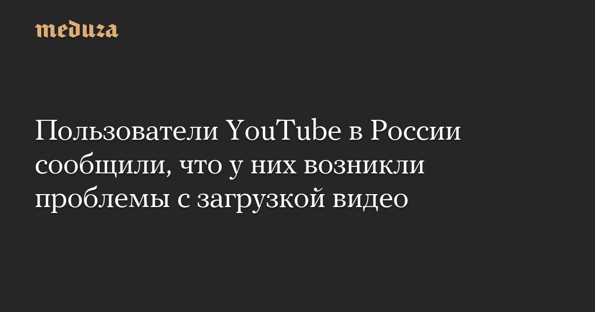 Пользователи YouTube в России сообщили, что у них возникли проблемы с загрузкой видео