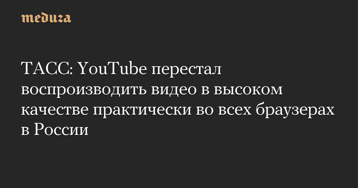 ТАСС: YouTube перестал воспроизводить видео в высоком качестве практически во всех браузерах в России