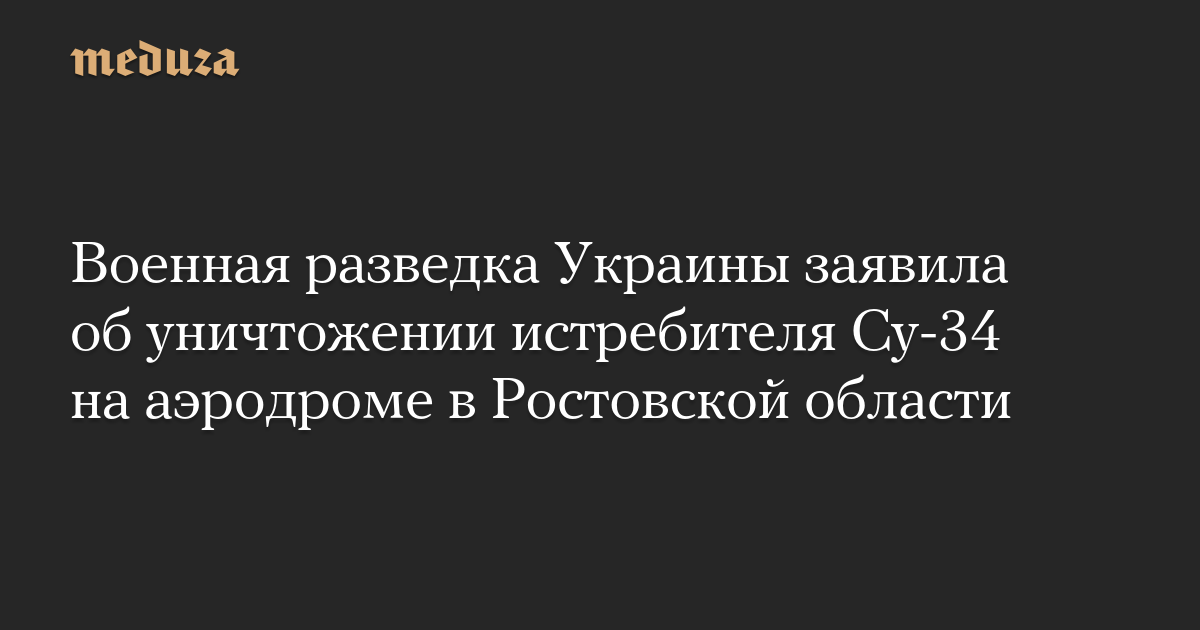 Военная разведка Украины заявила об уничтожении истребителя Су-34 на аэродроме в Ростовской области