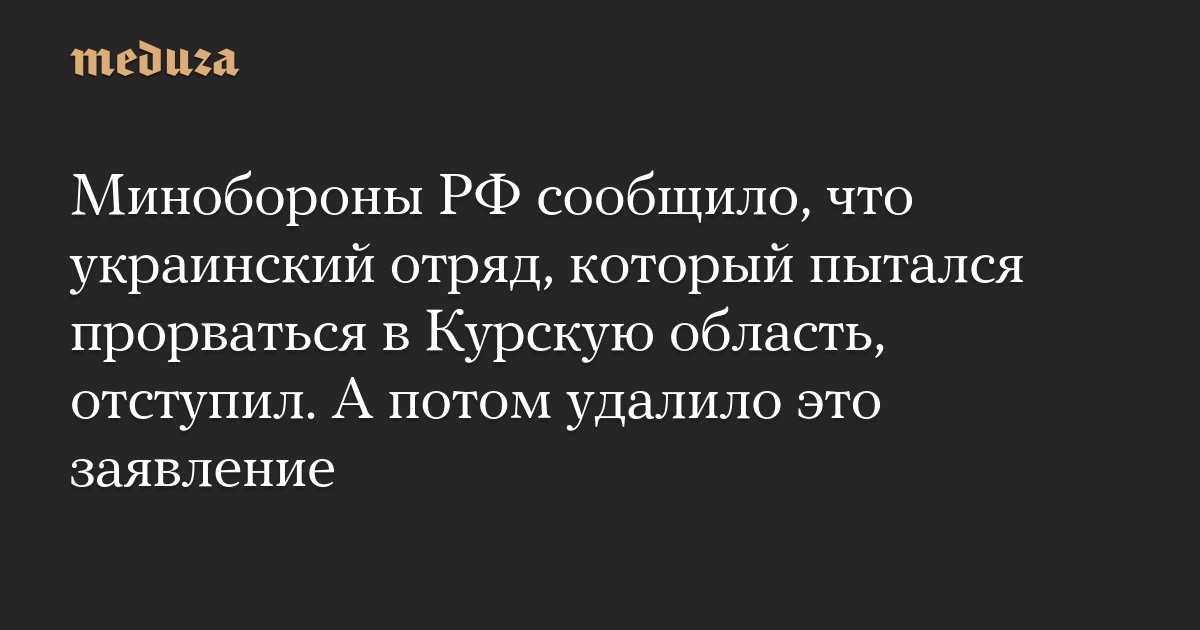 Минобороны РФ сообщило, что украинский отряд, который пытался прорваться в Курскую область, отступил. А потом удалило это заявление