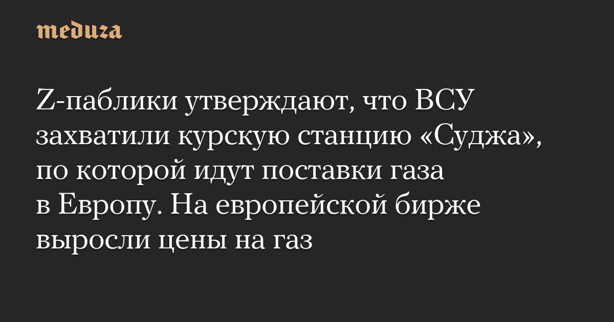 Z-паблики утверждают, что ВСУ захватили курскую станцию «Суджа», по которой идут поставки газа в Европу. На европейской бирже выросли цены на газ