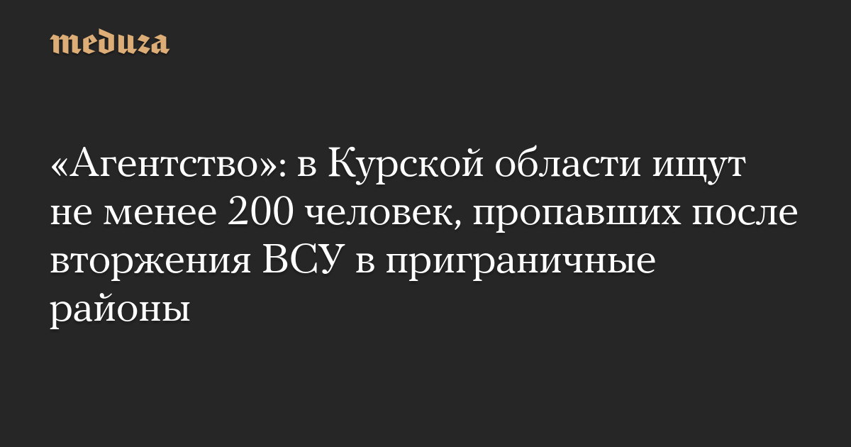 «Агентство»: в Курской области ищут не менее 200 человек, пропавших после вторжения ВСУ в приграничные районы