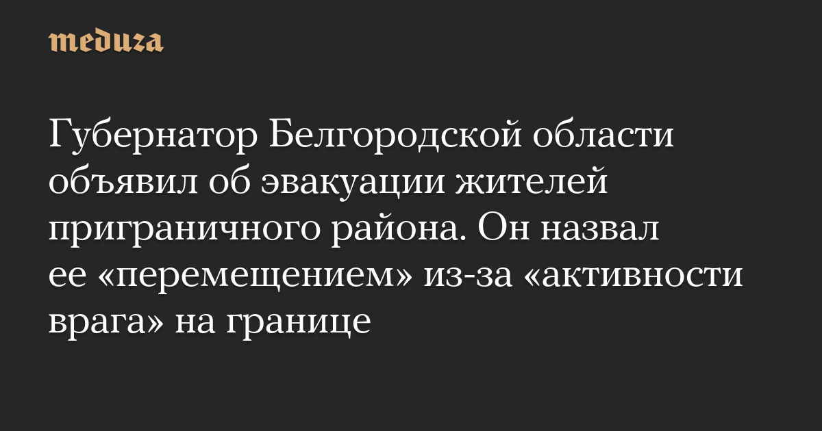 Губернатор Белгородской области объявил об эвакуации жителей приграничного района. Он назвал ее «перемещением» из-за «активности врага» на границе