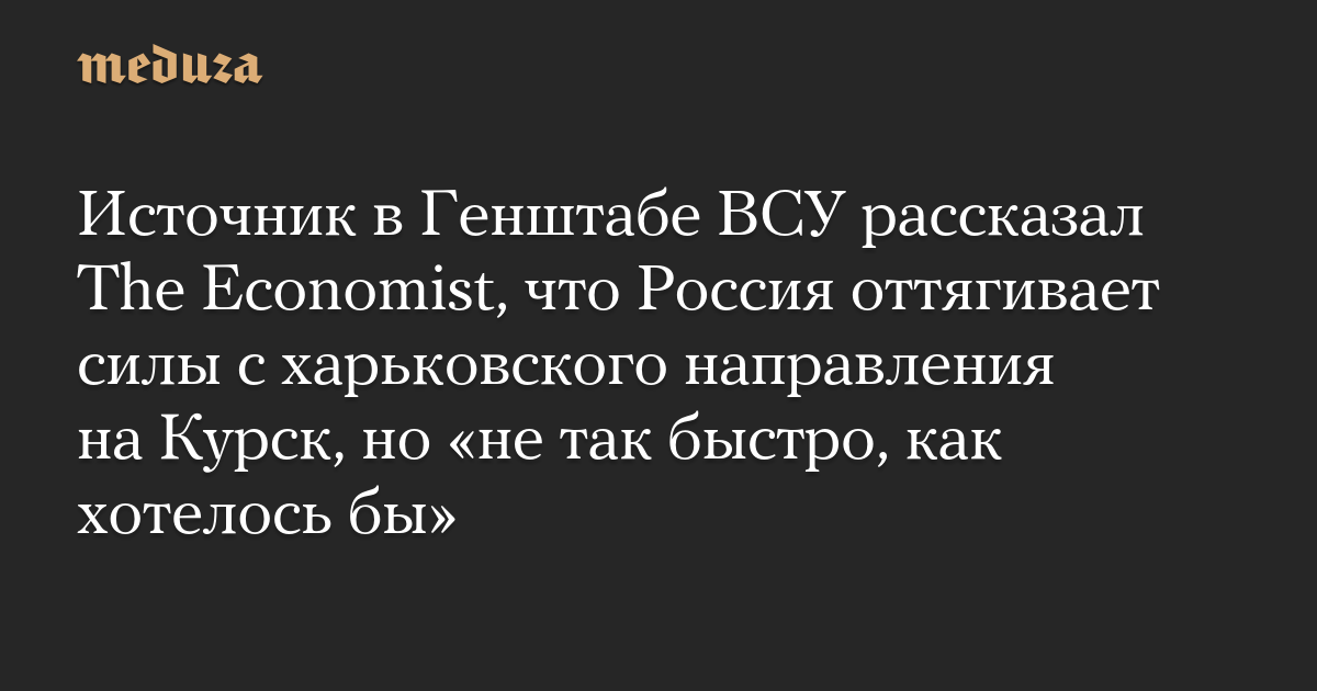 Источник в Генштабе ВСУ рассказал The Economist, что Россия оттягивает силы с харьковского направления на Курск, но «не так быстро, как хотелось бы»