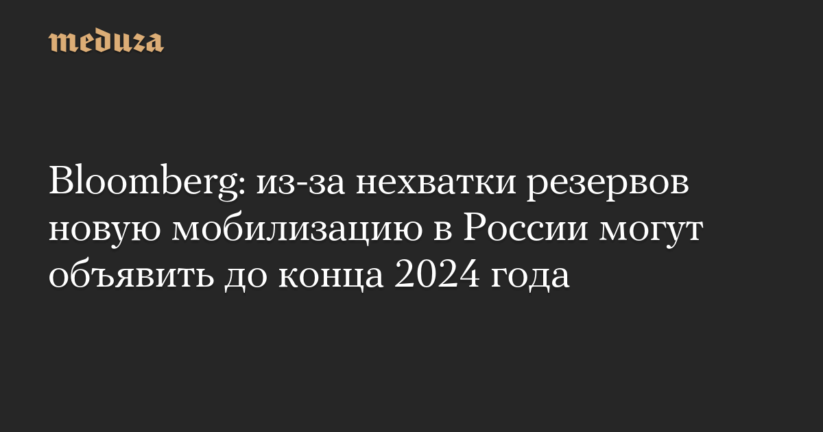 Bloomberg: из-за нехватки резервов новую мобилизацию в России могут объявить до конца 2024 года