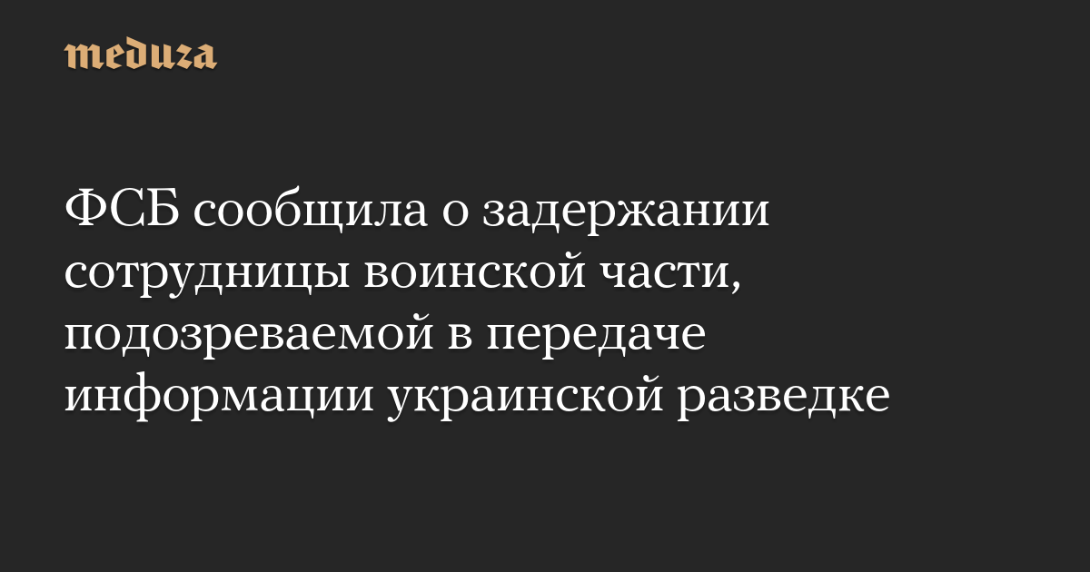 ФСБ сообщила о задержании сотрудницы воинской части, подозреваемой в передаче информации украинской разведке