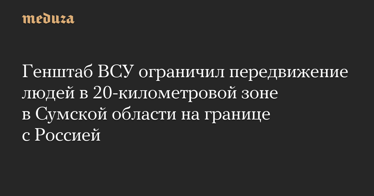 Генштаб ВСУ ограничил передвижение людей в 20-километровой зоне в Сумской области на границе с Россией
